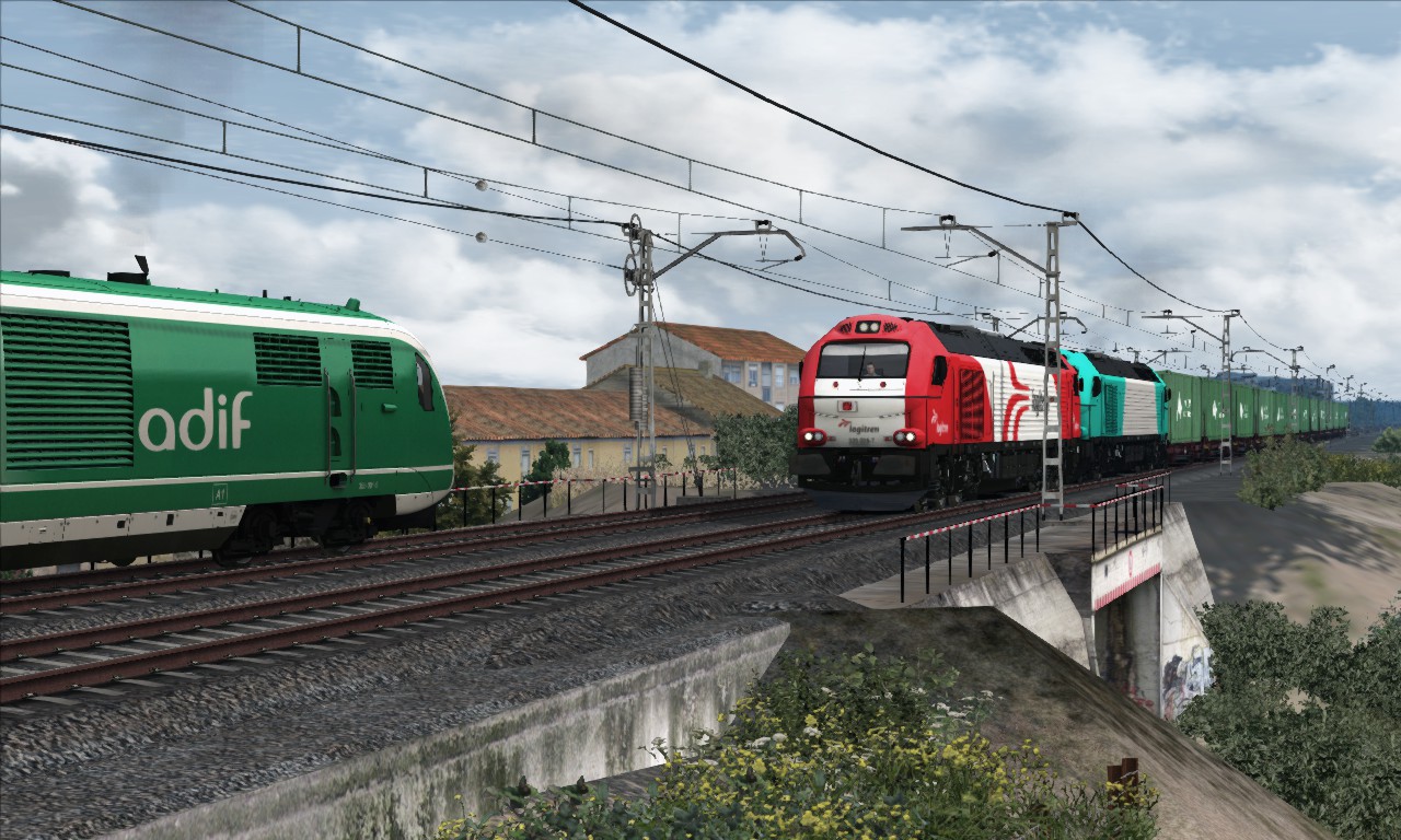 En total son tres estos packs utilizados: el "Rural Landscapes" de 3DTrains, el "Foliage01" de RSDL y el "Glasgow_Airport_Rail_Link" (GARL).